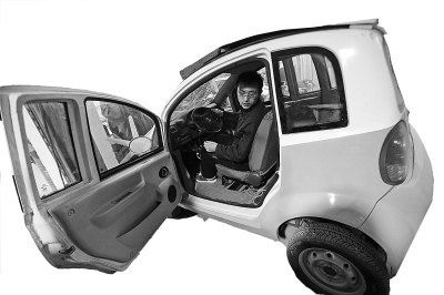 记者近日在北工大环境与能源工程学院楼内见到了这辆“风光电互补节能车”。站在侧后方看,这辆蓝白色的车外观、尺寸与小排量微型轿车无异,两米多长,一米多高。标准轮胎、照明灯、转向灯、反光镜等一应俱全。
